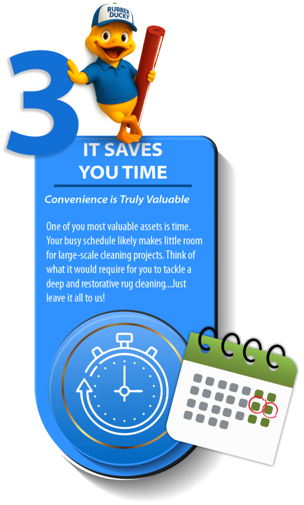 Here’s a look at how Rubber Ducky Area Rug Cleaning takes care of your area rugs cleaning needs! The process is proven and thorough. Area Rugs are completed in minutes, not hours. This limits the amount of time your area rugs is exposed to water & detergent cleaning products.